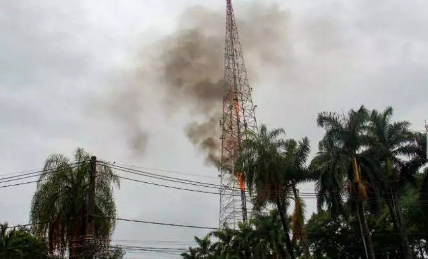 Incêndio atinge torre de transmissão da afiliada da Record em Campo Grande
