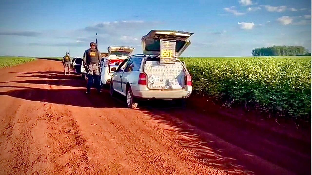 Policiais do DOF (Departamento de Operações de Fronteira) apreenderam nesta quarta-feira (8/1), em Maracaju, três veículos carregados com aproximadamente 3.400 pacotes de cigarros contrabandeados do Paraguai. Na ação, quatro homens, de 20, 22, 30 e 50 anos, foram presos.